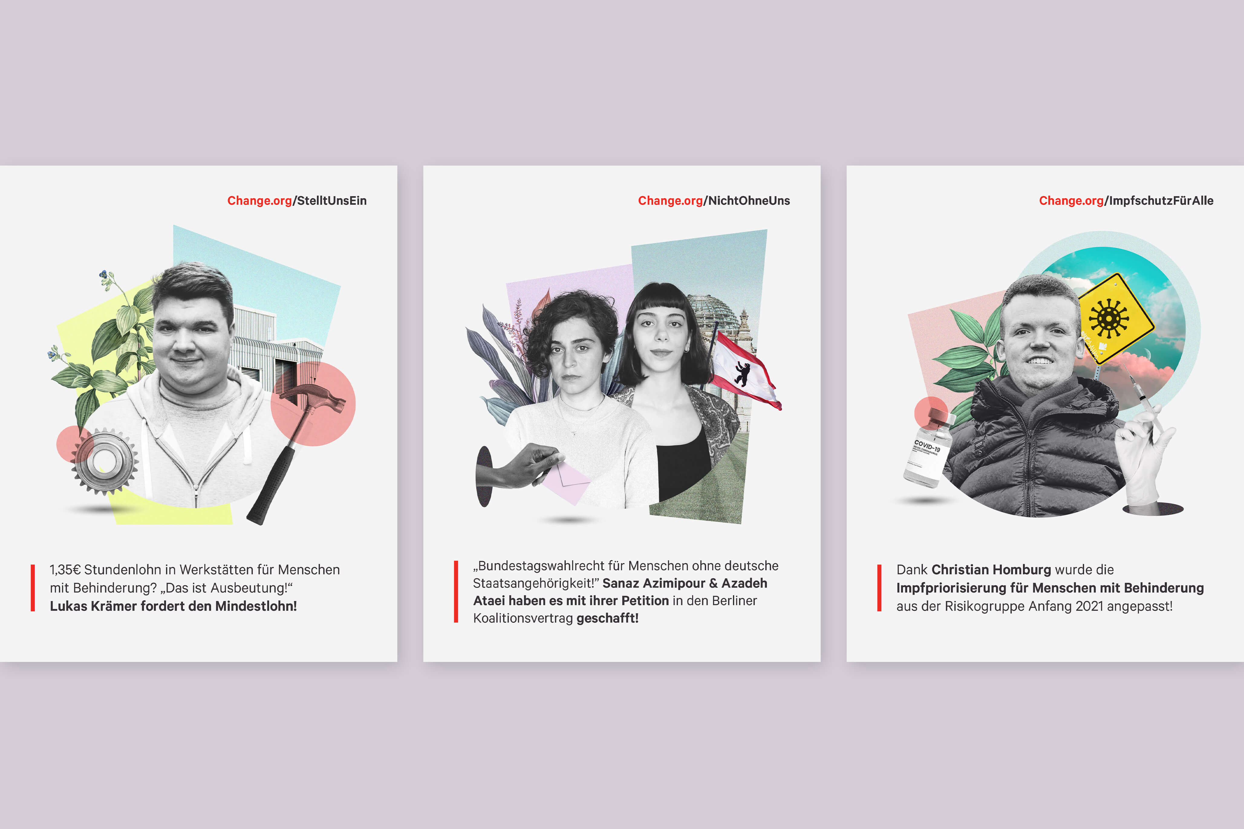 Series of digital-collage portraits of different activists and petitionstarters of digital petition platform change.org in Germany.