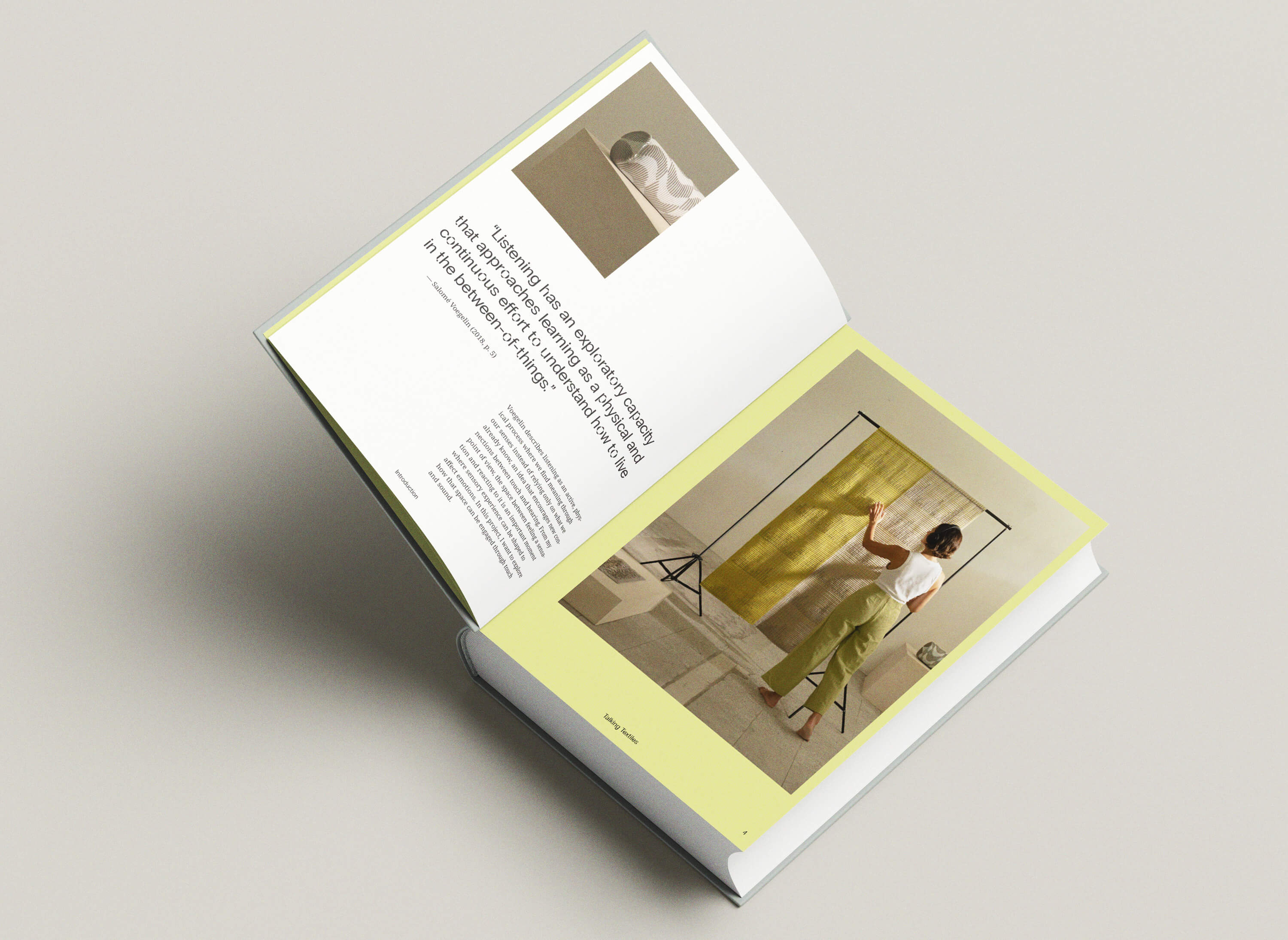 Textiles, traditionally valued for their tactile comfort and sound-absorbing qualities, are examined here as sonic, multisensory materials. Talking Textiles is an e-textile project that integrates conductive materials and capacitive touch sensors to create interactive interfaces that respond to touch with sound in real time. Could textiles that „speak“ through their inherent sounds open new ways to support mental well-being? Grounded in ASMR principles, the work investigates how amplifying subtle material sounds—such as fiber friction and haptic interactions—can support emotional regulation and offer a sensory approach in therapeutic contexts.